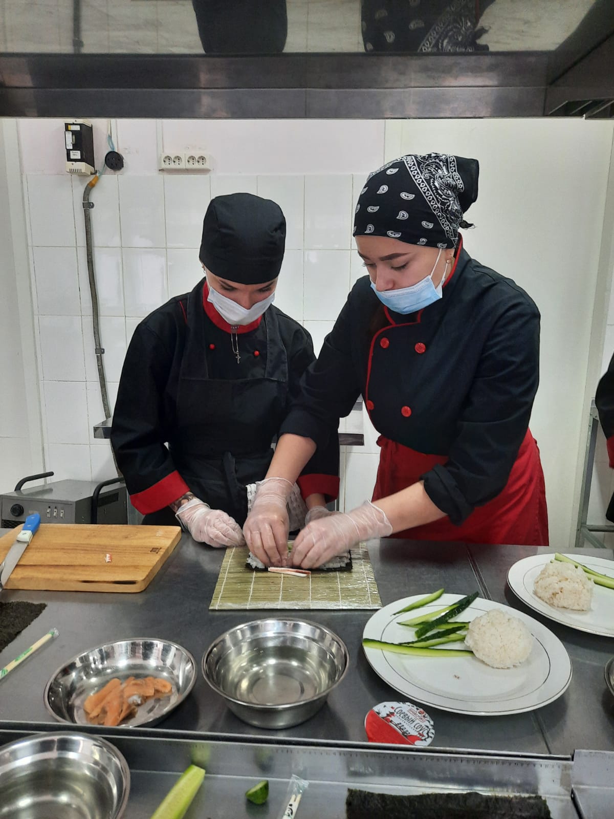 | В преддверии Дня повара колледж посетили наши выпускники, работающие на предприятиях города. Они провели мастер-классы для будущих поваров 1 и 2 курса. Микулич Наталья - выпускница 2018 года, ныне работает в кафе "Чак Нори", провела мастер-класс на тему:"Приготовление блюд японской кухни (роллы)". Выпускник 2020 года Голубев Вячеслав, работающий в КРЦ" Горняк" поваром показал приготовление грузинской кухни - хачапури по- аджарски, хачапури Мигрельская. Ребята наблюдали и охотно повторяли показ приготовления изделий. Будущим поварам была представлена возможность самим приготовить изделия и угостить своих родных и близких. Мы благодарим наших выпускников за проведенные мастер-классы. Поздравляем всех настоящих и будущих поваров с их профессиональным праздником, желаем крепкого здоровья, успехов в нелегкой работе. |
